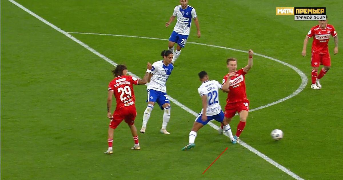 По эпизоду с попаданием мяча в руку игрока «Динамо» – для меня это пенальти. Казарцева позвали на момент пропуска фола – игрок «Спартака» эпизод ему перекрывал. Он посчитал, что был фол от Мангаша. И возможно, что из-за этого игрок «Динамо» двинул рукой в сторону. Для меня же это просто борьба за мяч – нет толчка, есть обычное оттирание игрока в рамках борьбы за мяч. Я не могу сказать, что Казарцев тут ошибся. Он так видит. Это Казарцев, у него свое видение всегда. Тут надо смотреть, как он будет трактовать эпизоды борьбы в будущем в этой игре – сейчас планка единоборств упала сильно.