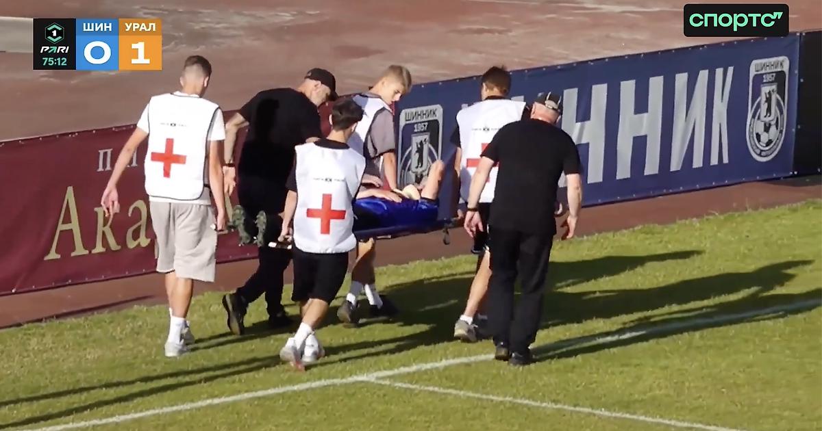 Защитник «Шинника» Лысцов избежал серьезной травмы в матче с «Уралом». Игрока, врезавшегося головой в соперника, унесли на носилках