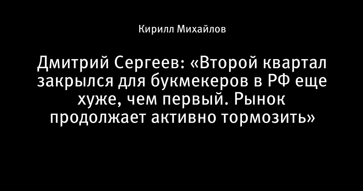 Дмитрий Сергеев: «Второй квартал закрылся для букмекеров в РФ еще хуже, чем первый. Рынок продолжает активно тормозить»
