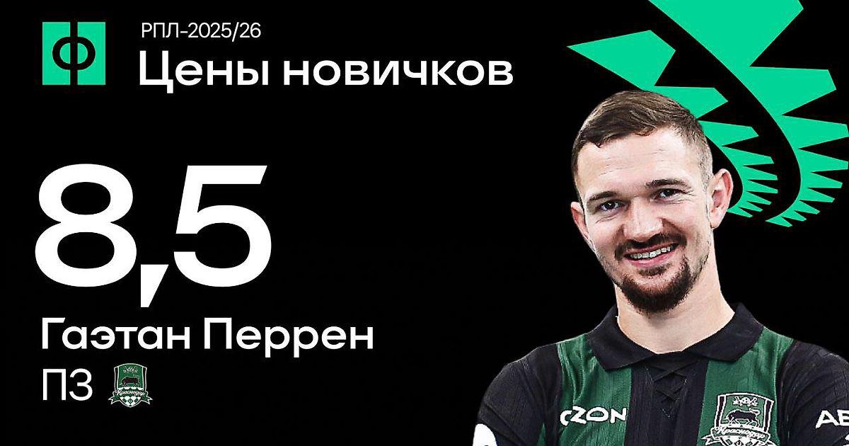 Новичок «Краснодара» Перен стоит 8,5 млн в Фэнтези РПЛ. Он добавлен в турнир