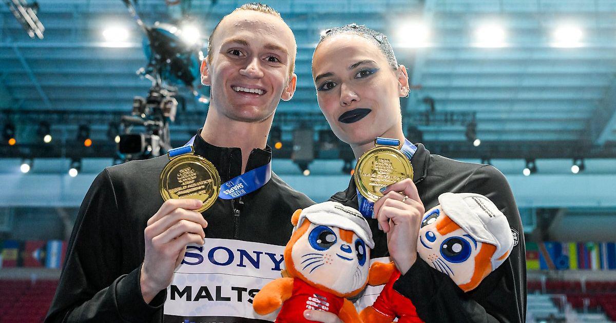 Майя Гурбанбердиева и Александр Мальцев выиграли золото в технической программе в микст-дуэте. Для Мальцева это третье золото турнира.