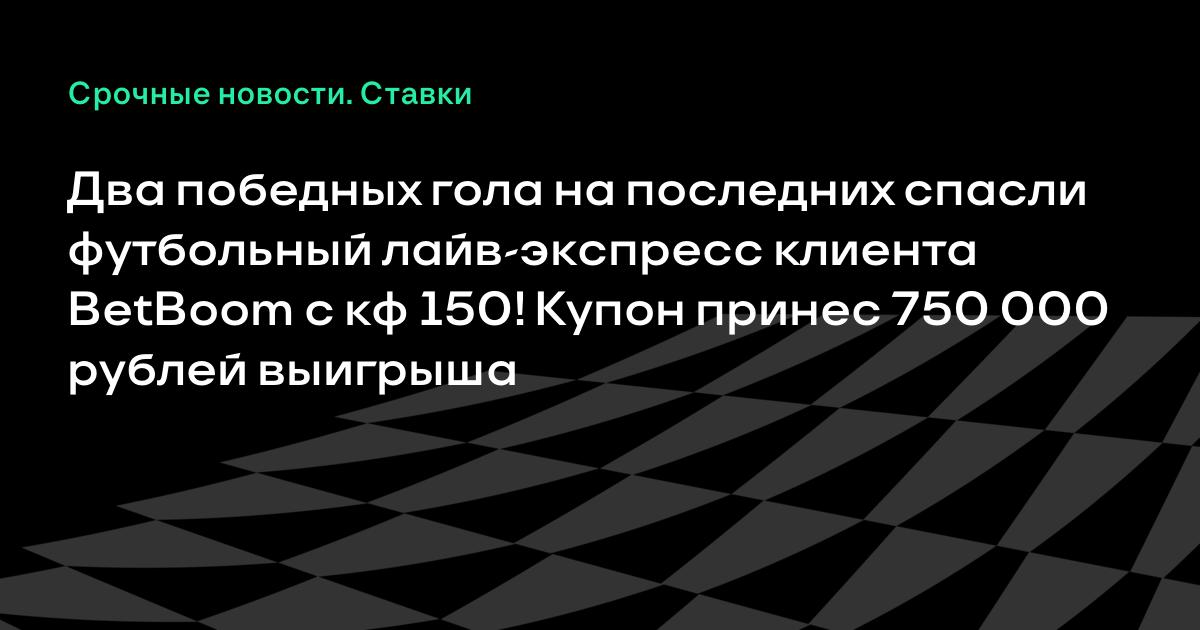 Два победных гола на последних спасли футбольный лайв-экспресс клиента BetBoom с кф 150! Купон принес 750 000 рублей выигрыша