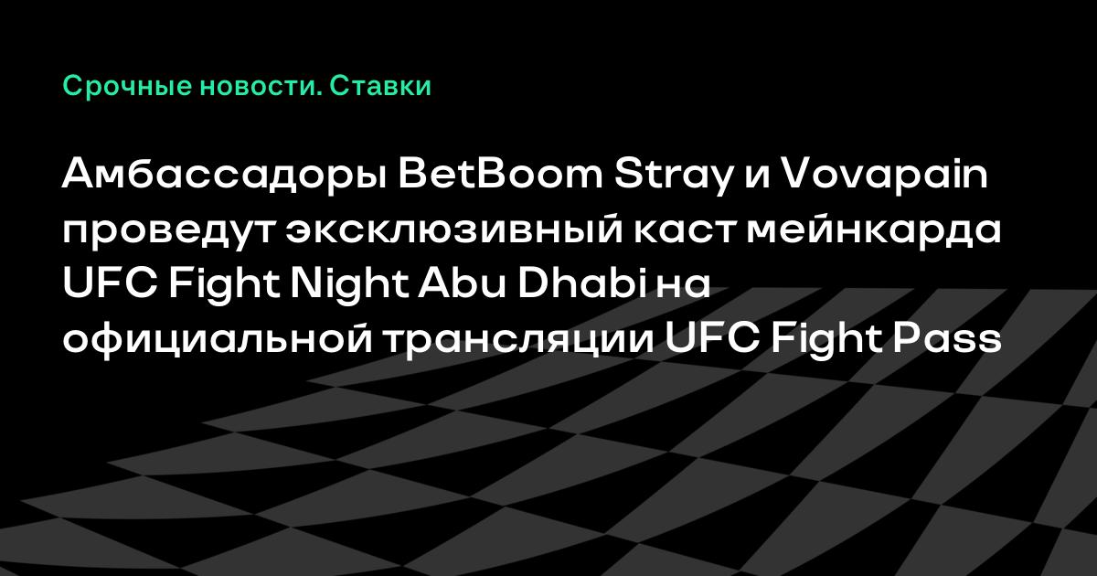 Амбассадоры BetBoom Stray и Vovapain проведут эксклюзивный каст мейнкарда UFC Fight Night Abu Dhabi на официальной трансляции UFC Fight Pass