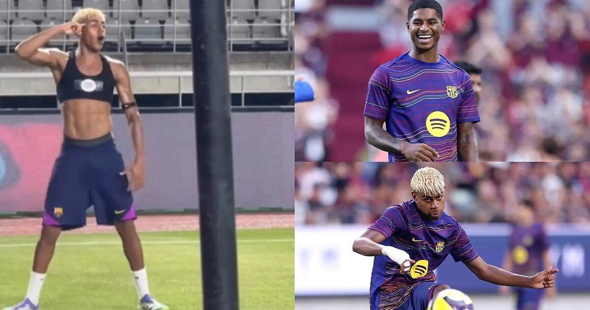 Ямаль показал празднование Рэшфорда, забив на тренировке