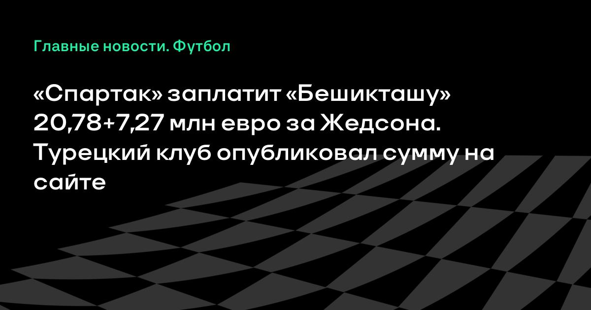 «Спартак» заплатит «Бешикташу» 20,78+7,27 млн евро за Жедсона. Турецкий клуб опубликовал сумму на сайте
