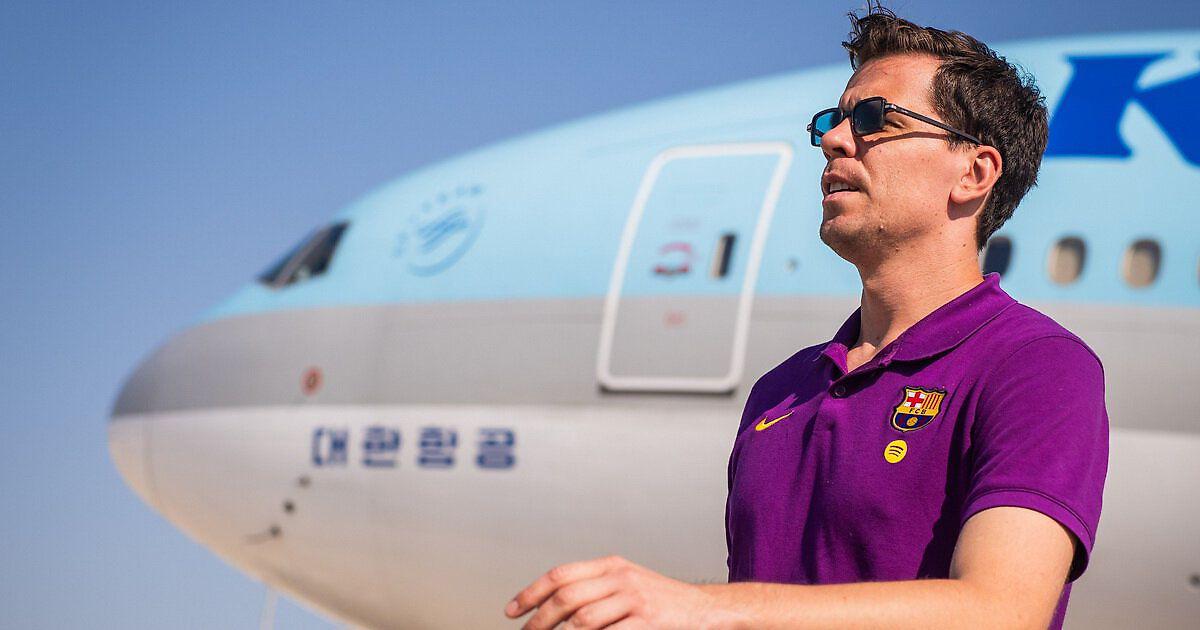 Вылет команды состоялся в четыре часа ночи. Полет длился около тринадцати часов, и самолет приземлился в аэропорту Барселона – Эль-Прат после половины одиннадцатого утра (с учетом семичасовой разницы во времени между Южной Кореей и Испанией).