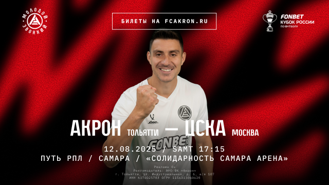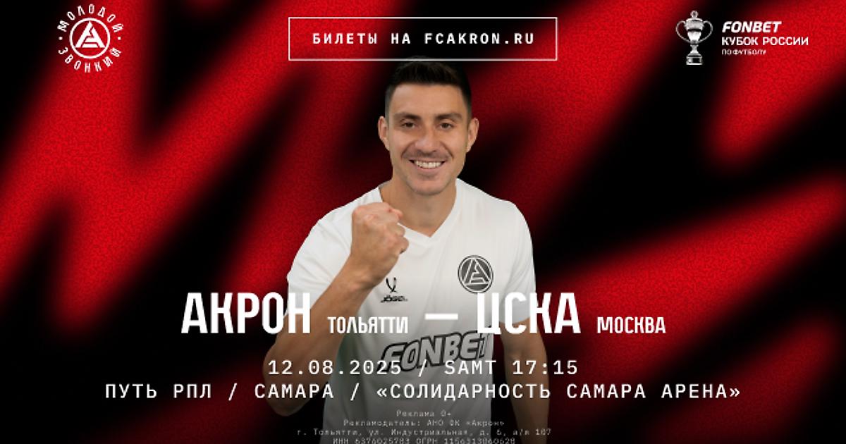 Во втором туре группового этапа Пути РПЛ FONBET Кубка России «Акрон» принимает ЦСКА. Матч пройдет завтра, 12 августа, в 17:15 по местному времени на стадионе «Солидарность Самара Арена».