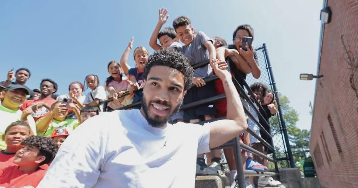 Джейсон Тейтум поучаствовал в церемонии закладки центра дошкольного образования, передвигаясь без защитного ботинка