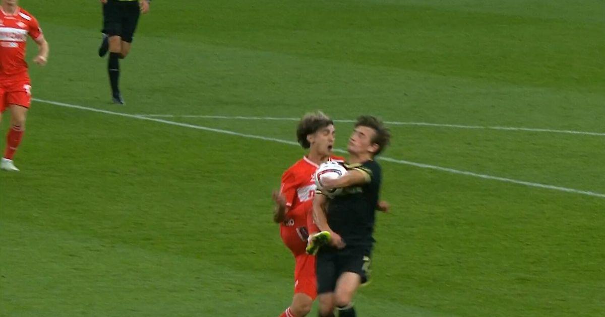Полузащитник красно-белых на 85-й минуте матча FONBET Кубка России попытался выбить мяч из своей штрафной после навеса «Динамо» Махачкала и попал ногой в грудь защитнику Темиркану Сундукову, не заметив его.