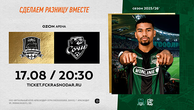Быки по итогам четырех туров идут на втором месте в турнирной таблице, обладая девятью очками. Сочинцы же расположились на 15-й строчке, набрав одно очко. Краснодарцы, ждем всех на домашней игре против «Сочи»!