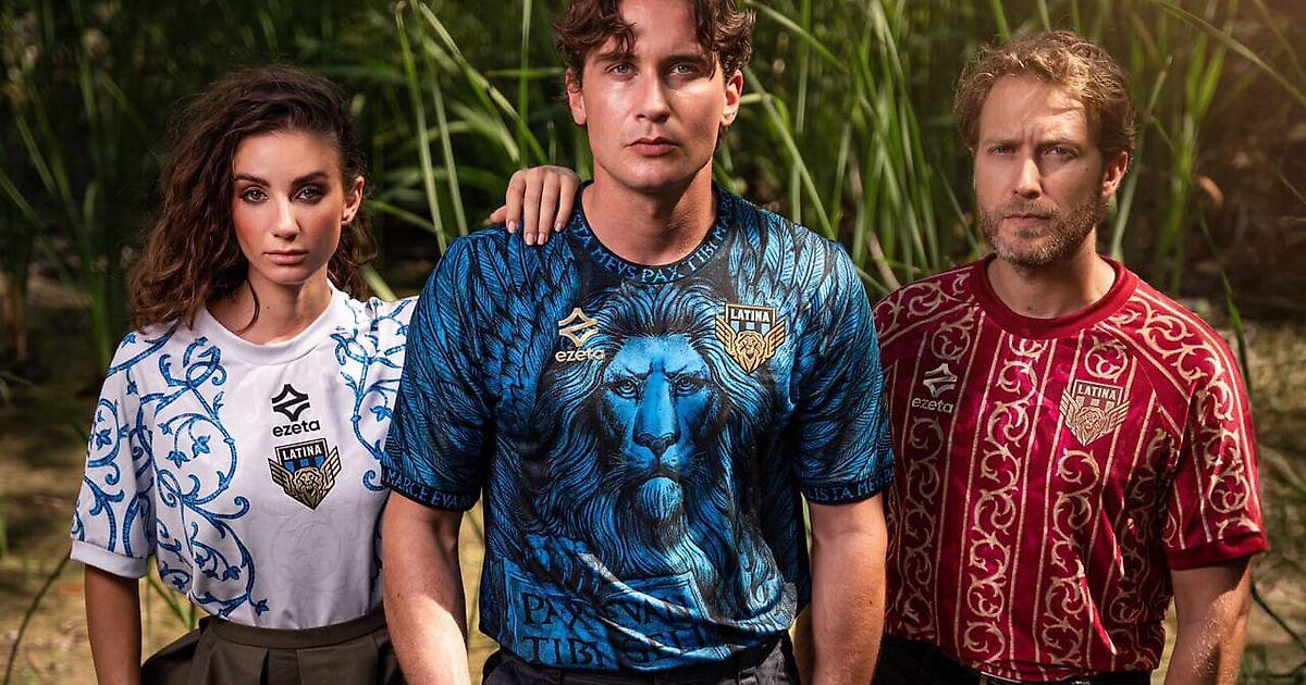 Домашний комплект клуба из Латины выполнен в сине-черных цветах с изображением крылатого льва Святого Марка с раскрытой книгой, в которой написано Pax tibi Marce – evangelista meus («Мир тебе, Марк, мой Евангелист»). Лев святого Марка – символ святого евангелиста Марка и Венеции.