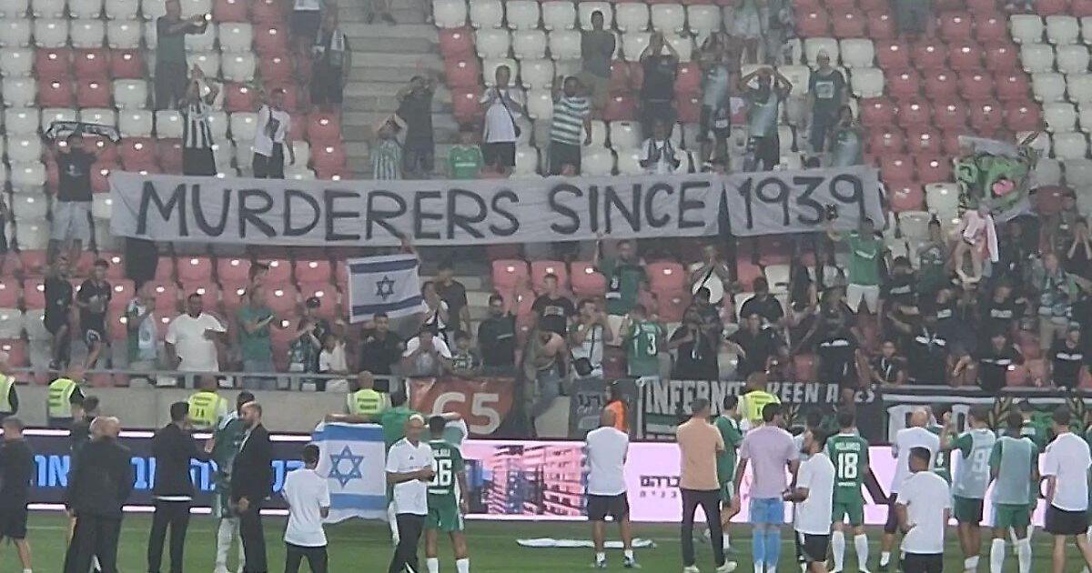 Во время матча на секторе болельщиков израильского клуба был растянут баннер с надписью «Убийцы с 1939 года».