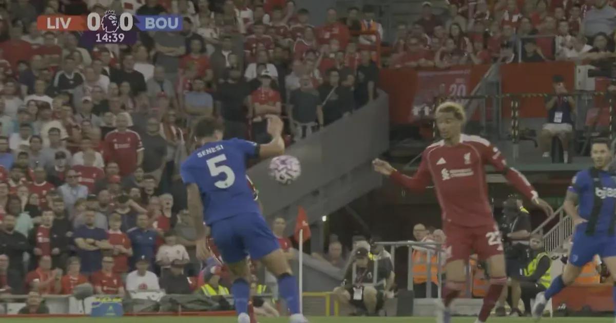 На 14-й минуте защитник «Борнмута» Маркос Сенеси махнул рукой возле мяча и помешал форварду Юго Экитике выйти один на один. Кроме того, мяч мог попасть в руку аргентинцу перед этим – когда отскочил от его же ноги.