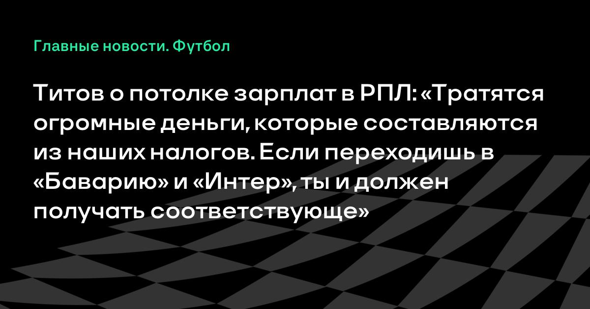 Титов о потолке зарплат в РПЛ: «Тратятся огромные деньги, которые составляются из наших налогов. Если переходишь в «Баварию» и «Интер», ты и должен получать соответствующе»