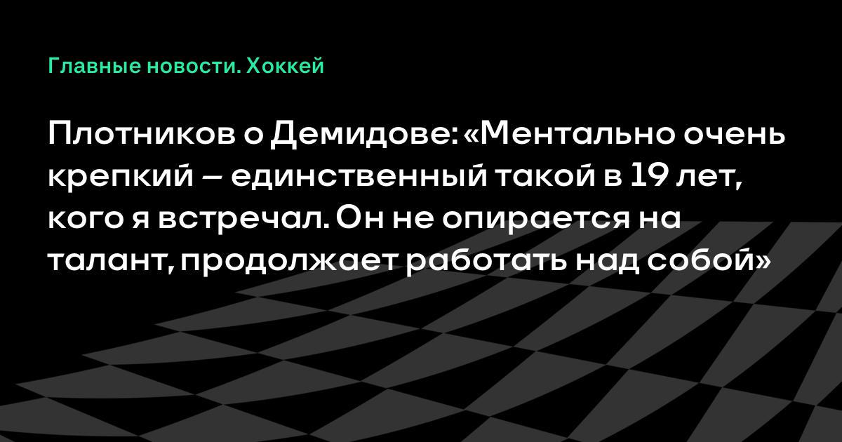 Плотников о Демидове: «Ментально очень крепкий – единственный такой в 19 лет, кого я встречал. Он не опирается на талант, продолжает работать над собой»