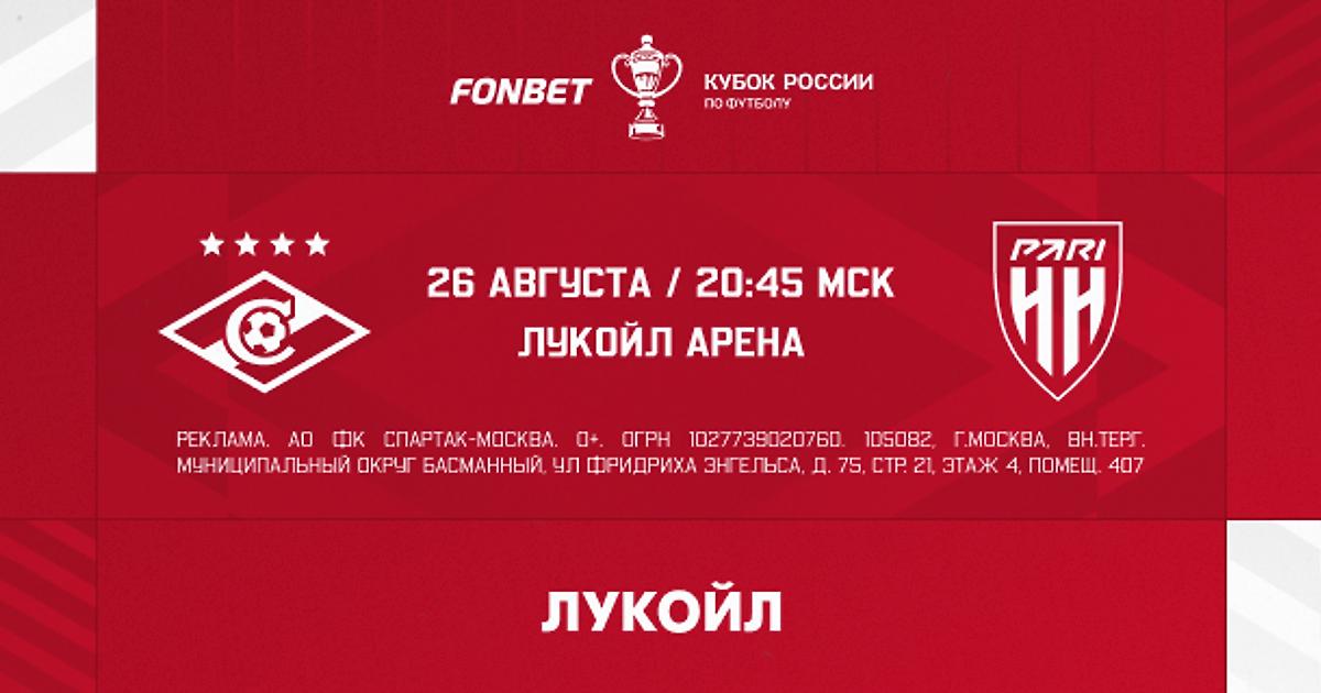 «Спартак» сыграет с «Пари НН» в третьем раунде Фонбет Кубка России.