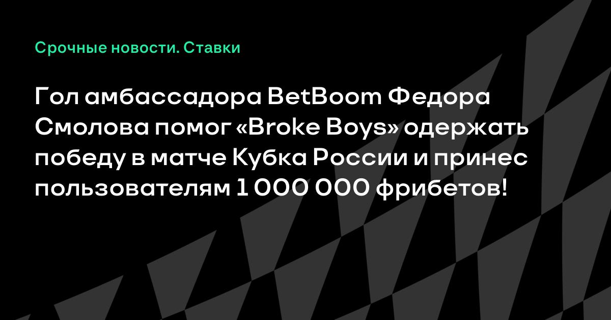 Гол амбассадора BetBoom Федора Смолова помог «Broke Boys» одержать победу в матче Кубка России и принес пользователям 1 000 000 фрибетов!