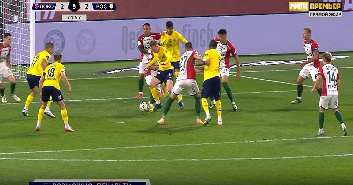 «Локомотив» – «Ростов», 52-я минута. Правильное решение принимает Чебан и назначает 11-метровый удар в ворота команды «Локомотив».
