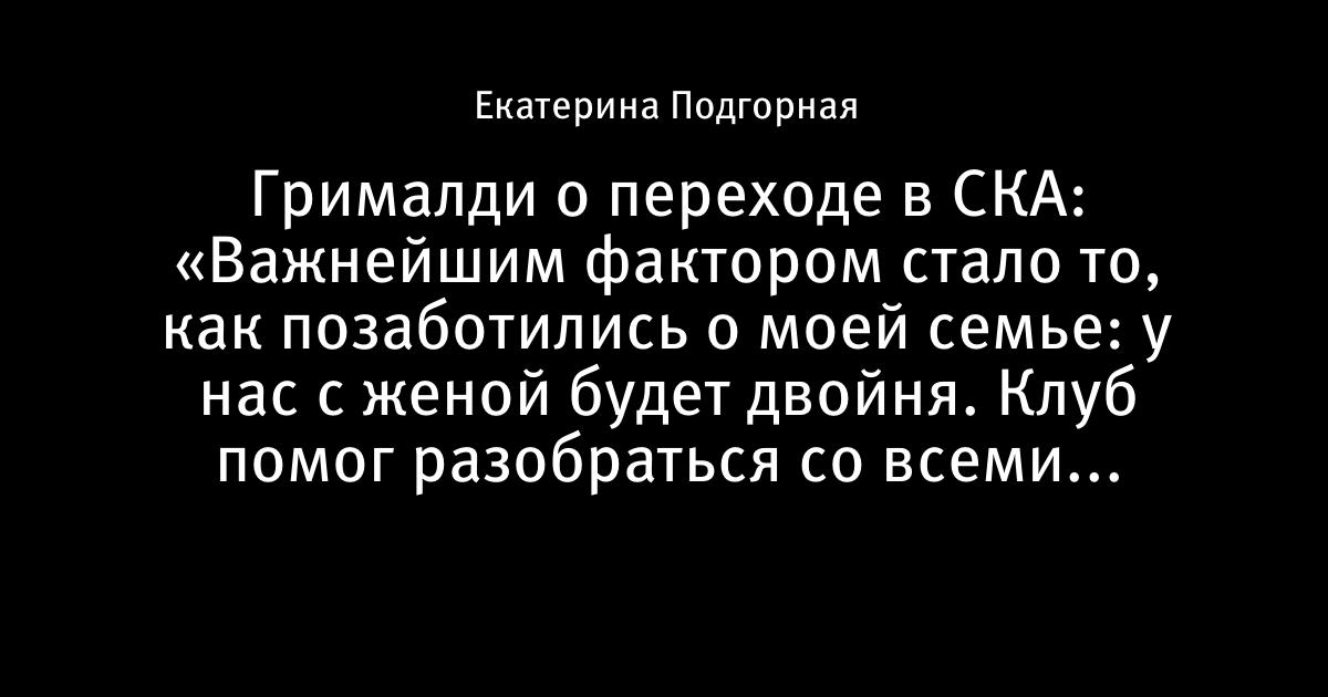 Грималди о переходе в СКА: «Важнейшим фактором стало то, как позаботились о моей семье: у нас с женой будет двойня. Клуб помог разобраться со всеми вопросами»