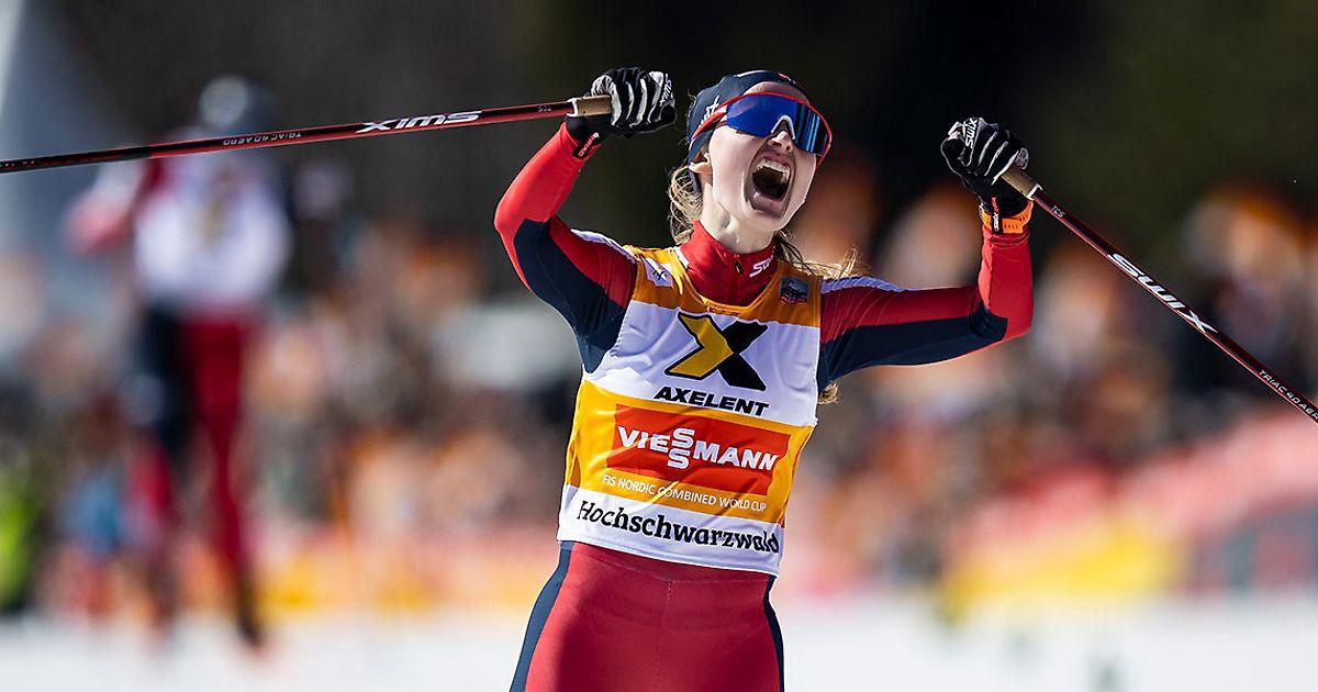 Спортсменке 23 года, она является пятикратной чемпионкой мира в лыжном двоеборье.