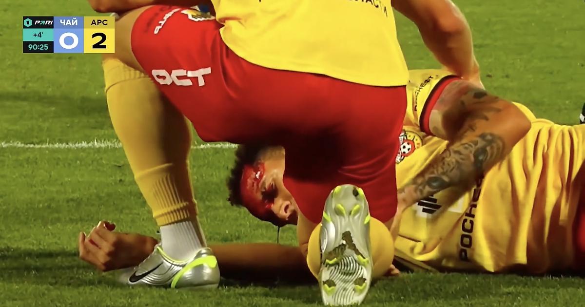 Вратарь «Чайки» и форвард тульского «Арсенала» столкнулись головами в матче Первой лиги. Рейесу рассекли лицо до крови, оба игрока покинули поле