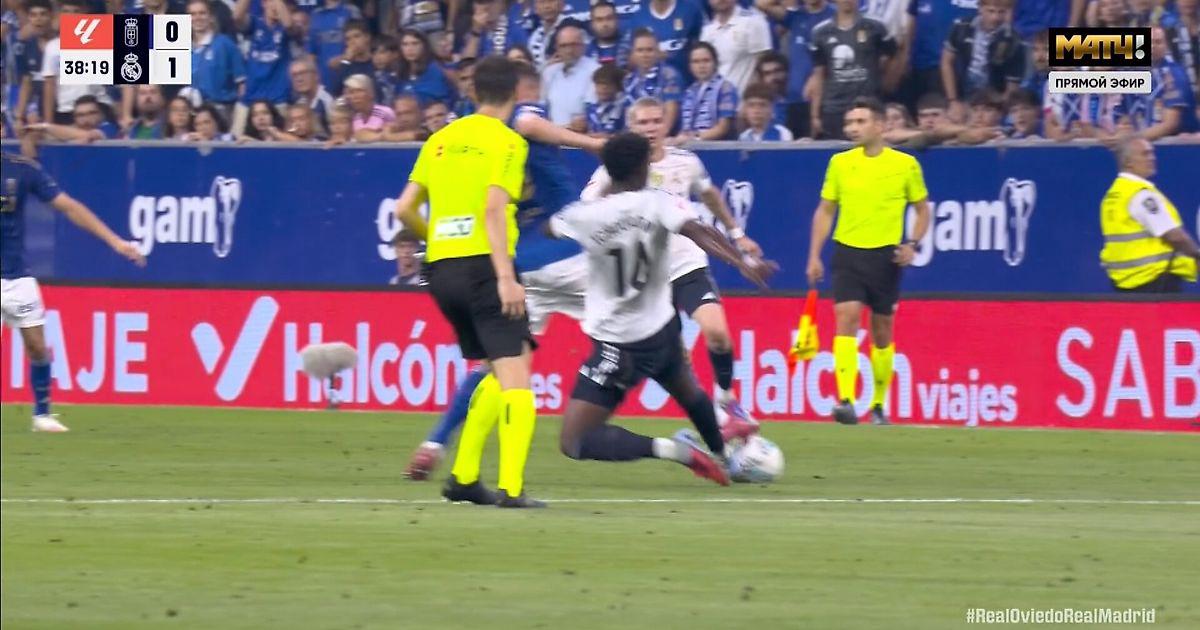 Голевая контратака началась с того, что хавбек мадридцев Орельен Тчуамени в центре поля в подкате помешал принять мяч Леандеру Дендонкеру. Игрок «Овьедо» упал на газон, судья Рикардо де Бургос Бенгоэчеа не отреагировал, видеоассистент звать его к монитору не стал.
