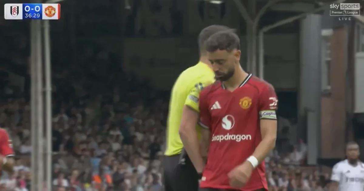 Пенальти в ворота «Фулхэма» принялся исполнять Бруну Фернандеш. В момент, когда португалец отходил назад для разбега, его плечо задел пробежавший мимо рефери.