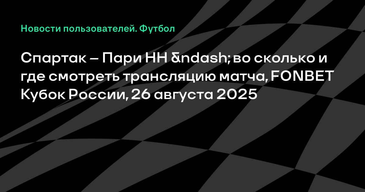Спартак – Пари НН – во сколько и где смотреть трансляцию матча, FONBET Кубок России, 26 августа 2025