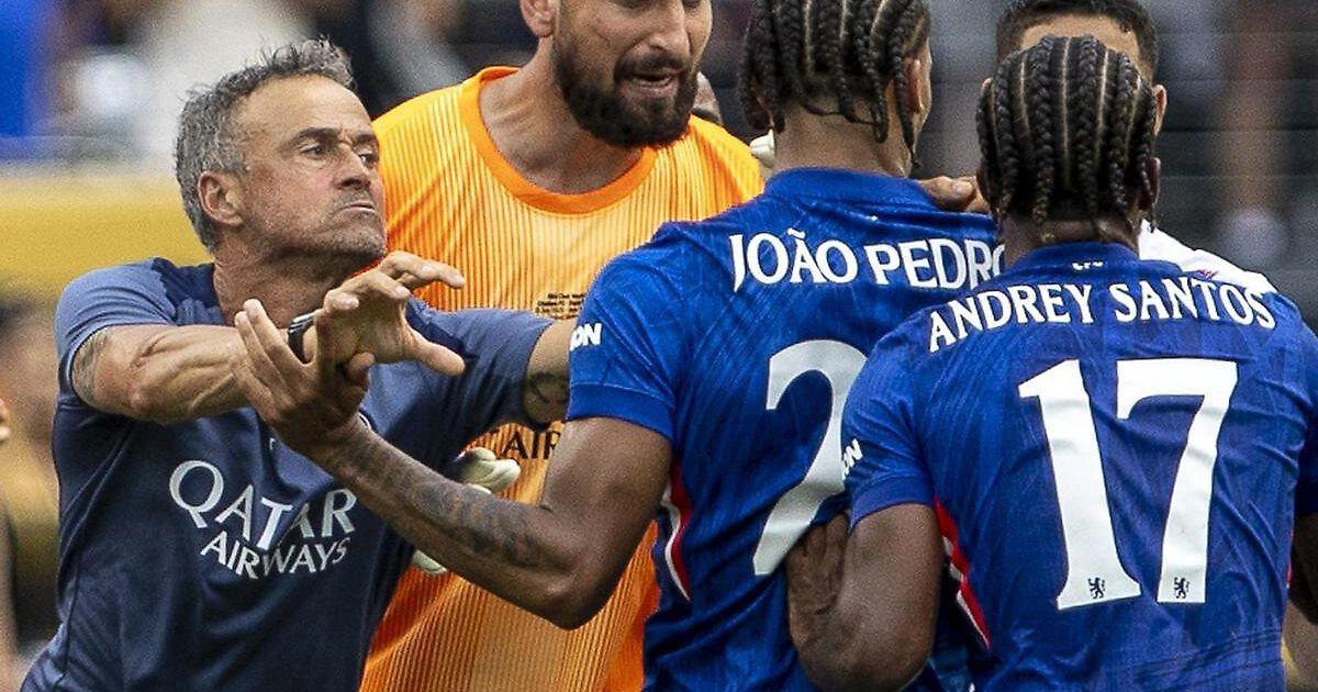 В ходе перепалки главный тренер парижан Луис Энрике толкнул форварда «синих» Жоао Педро, забившего третий гол. Испанец угодил рукой сперва в горло, а затем в лицо бразильцу, и нападающий оказался на газоне.