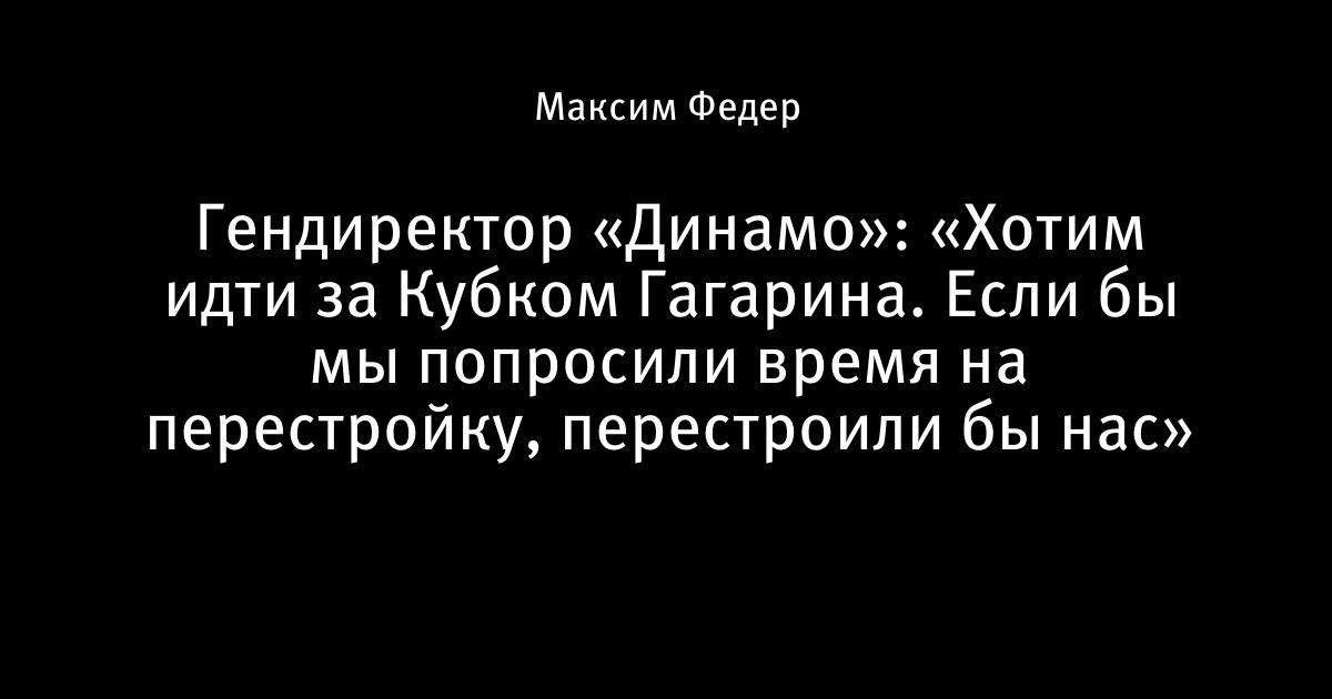 Гендиректор «Динамо»: «Хотим идти за Кубком Гагарина. Если бы мы попросили время на перестройку, перестроили бы нас»