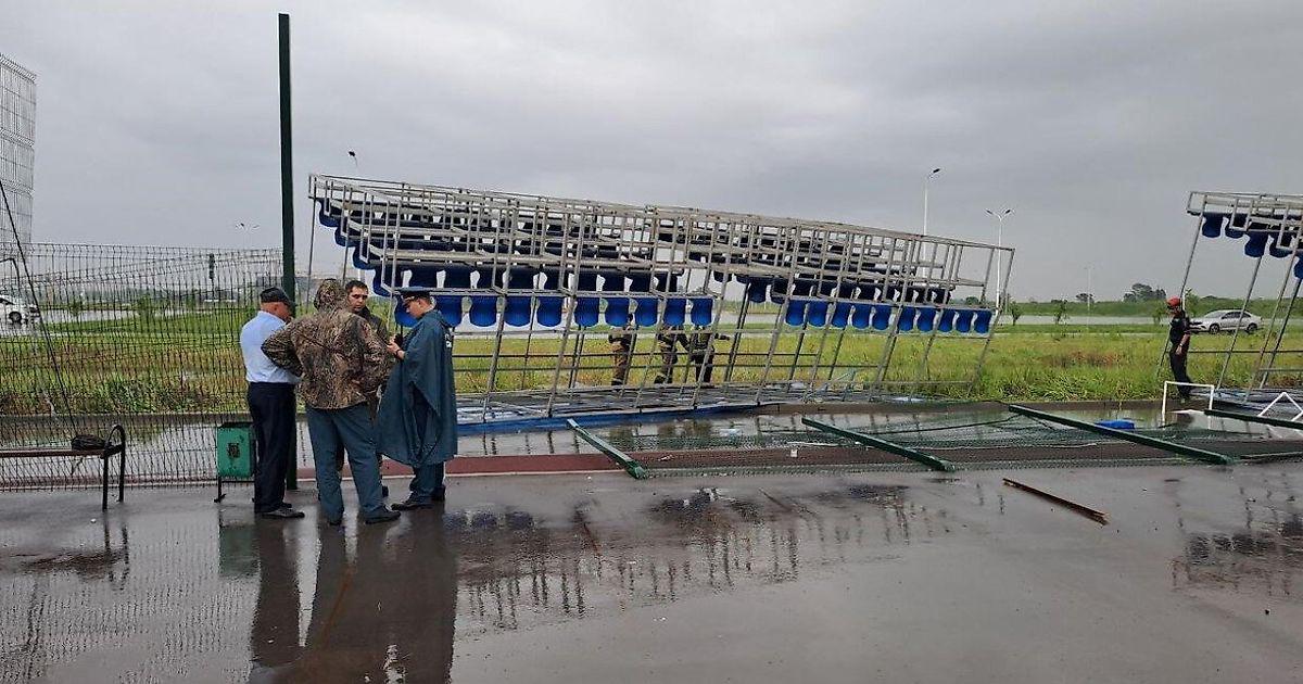 Инцидент произошел в 2023 году в Ростове-на-Дону во время футбольных соревнований среди школьников. Мероприятие проводилось на территории спортивной школы олимпийского резерва №5. Сообщалось, что порывом шквалистого ветра перевернуло сборные конструкции зрительских трибун.