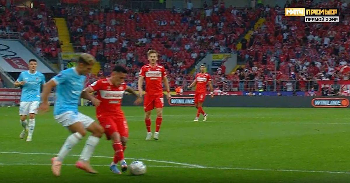 «Спартак» – «Сочи». Арбитр самостоятельно назначает 11-метровый удар в ворота команды «Сочи». Повторы так себе, как обычно.