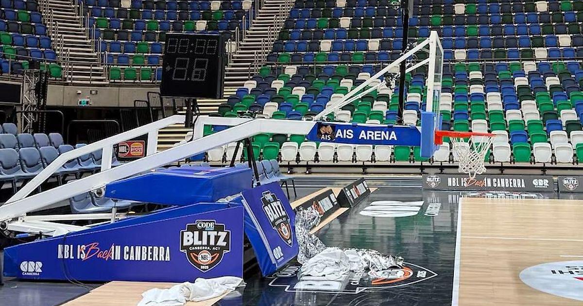 Игрок НБЛ был госпитализирован с травмой шеи после того, как на него упал баскетбольный щит