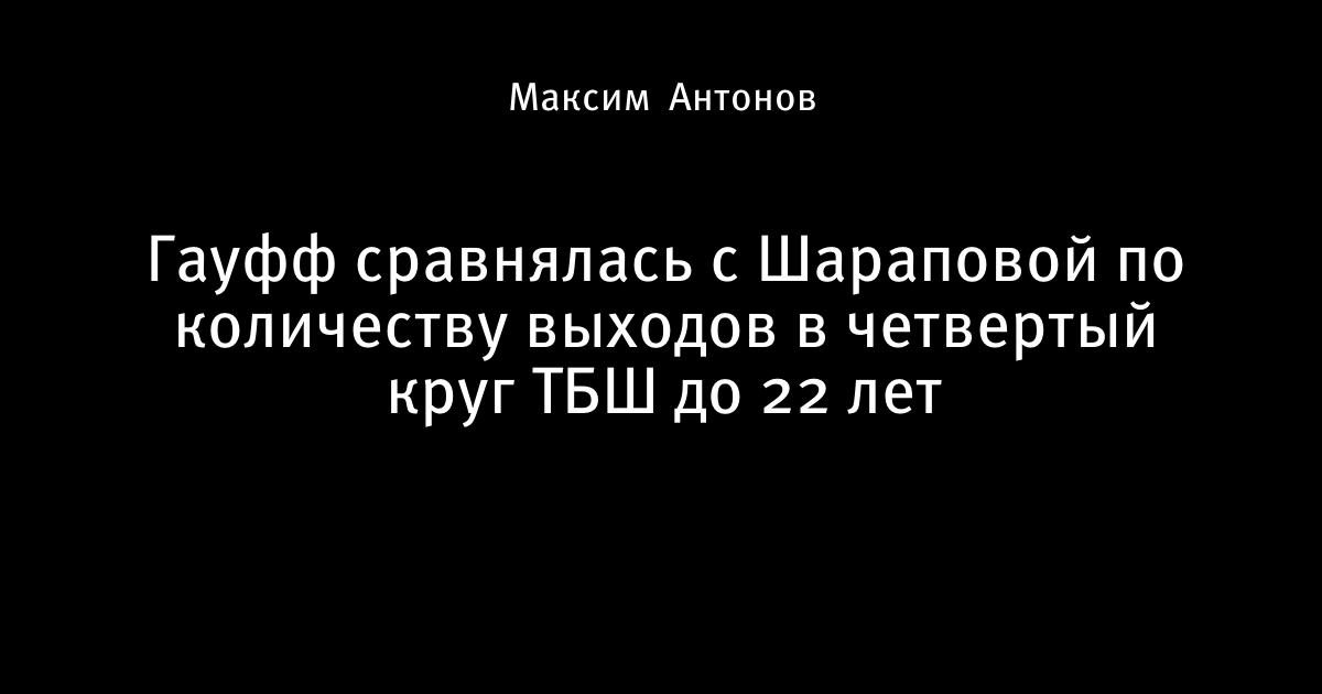 Гауфф сравнялась с Шараповой по количеству выходов в четвертый круг ТБШ до 22 лет