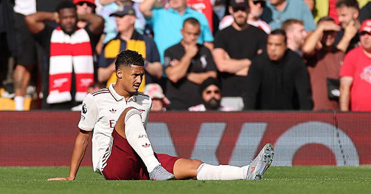 Защитник «Арсенала» повредил левую ногу на 5-й минуте игры 3-го тура АПЛ.