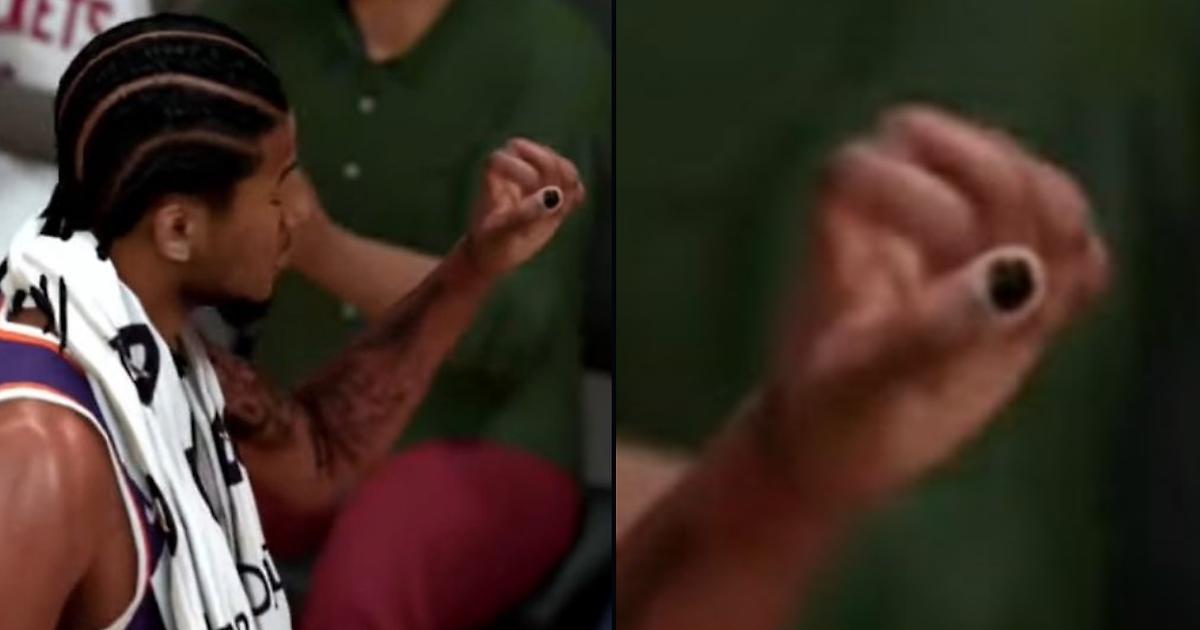 Разработчики добавили защитнику «Финикса» Джейлену Грину черный лак на ногтях рук.