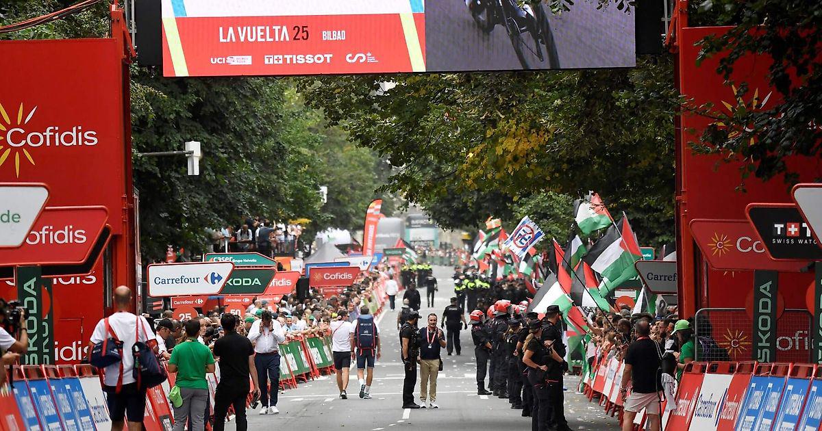 Накануне 11-й этап «Вуэльты», по решению организаторов, завершился без выявления победителя. Люди с палестинскими флагами собрались у ограждений в зоне финиша в Бильбао и выходили на трассу.