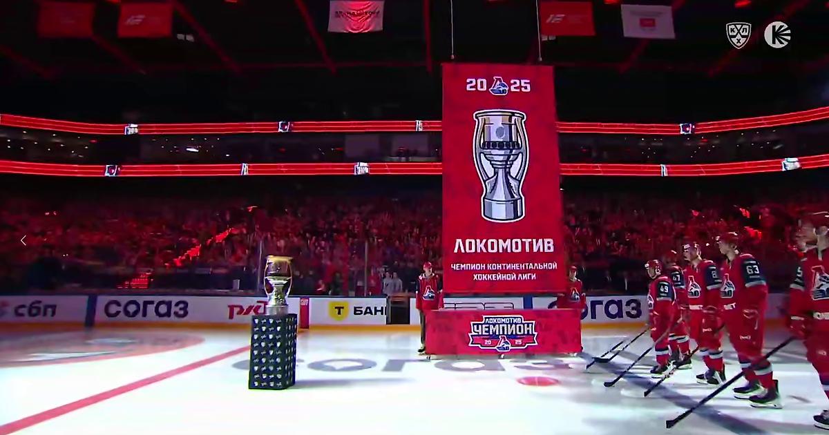 «Локомотив» поднял первый чемпионский баннер с Кубком Гагарина под своды арены перед матчем с «Трактором»
