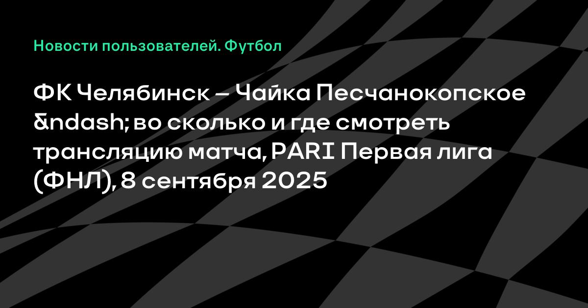 ФК Челябинск – Чайка Песчанокопское – во сколько и где смотреть трансляцию матча, PARI Первая лига (ФНЛ), 8 сентября 2025