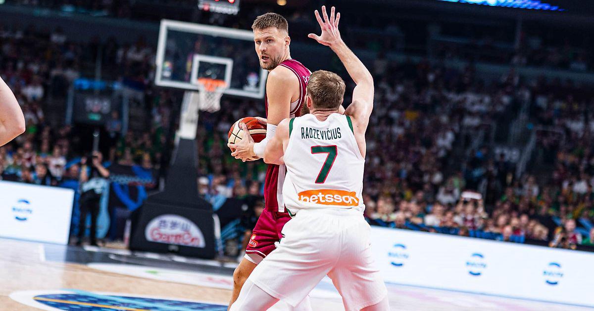 Латвия уступила Литве в 1/8 финала Евробаскета-2025, несмотря на яркую игру центрового.