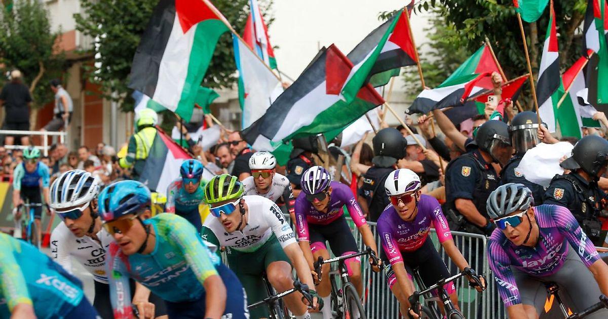 Инцидент произошел на 15-м этапе веломногодневки в Испании. Мужчина с флагом Палестины выбежал на дорогу, когда к нему приближались гонщики.