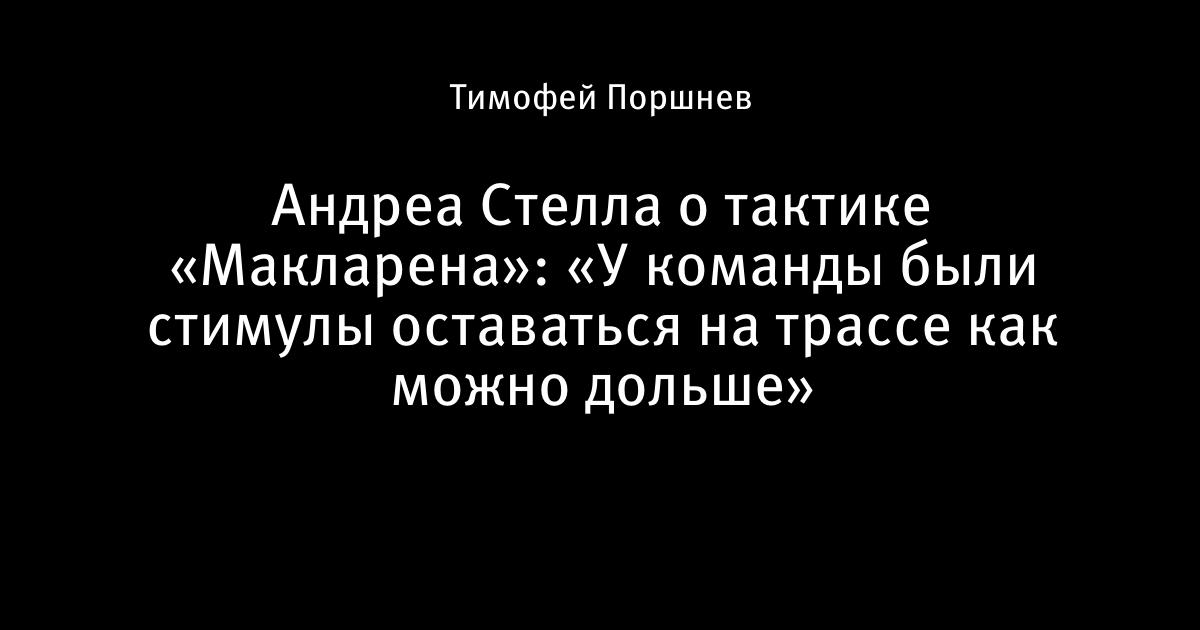 Андреа Стелла о тактике «Макларена»: «У команды были стимулы оставаться на трассе как можно дольше»