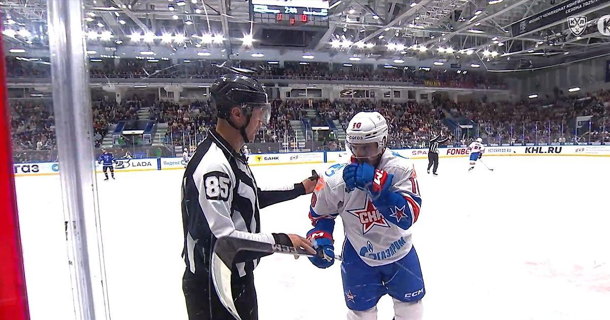 Нападающий СКА Джозеф Бландиси удален до конца матча за неприличный жест.