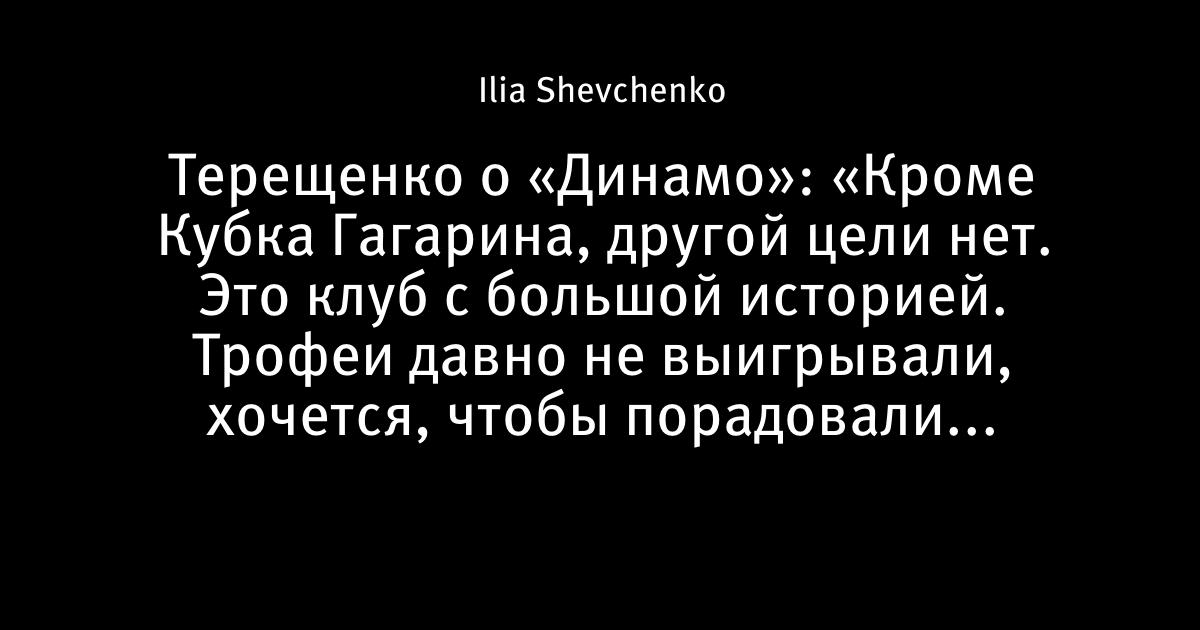 Терещенко о «Динамо»: «Кроме Кубка Гагарина, другой цели нет. Это клуб с большой историей. Трофеи давно не выигрывали, хочется, чтобы порадовали фанатов»