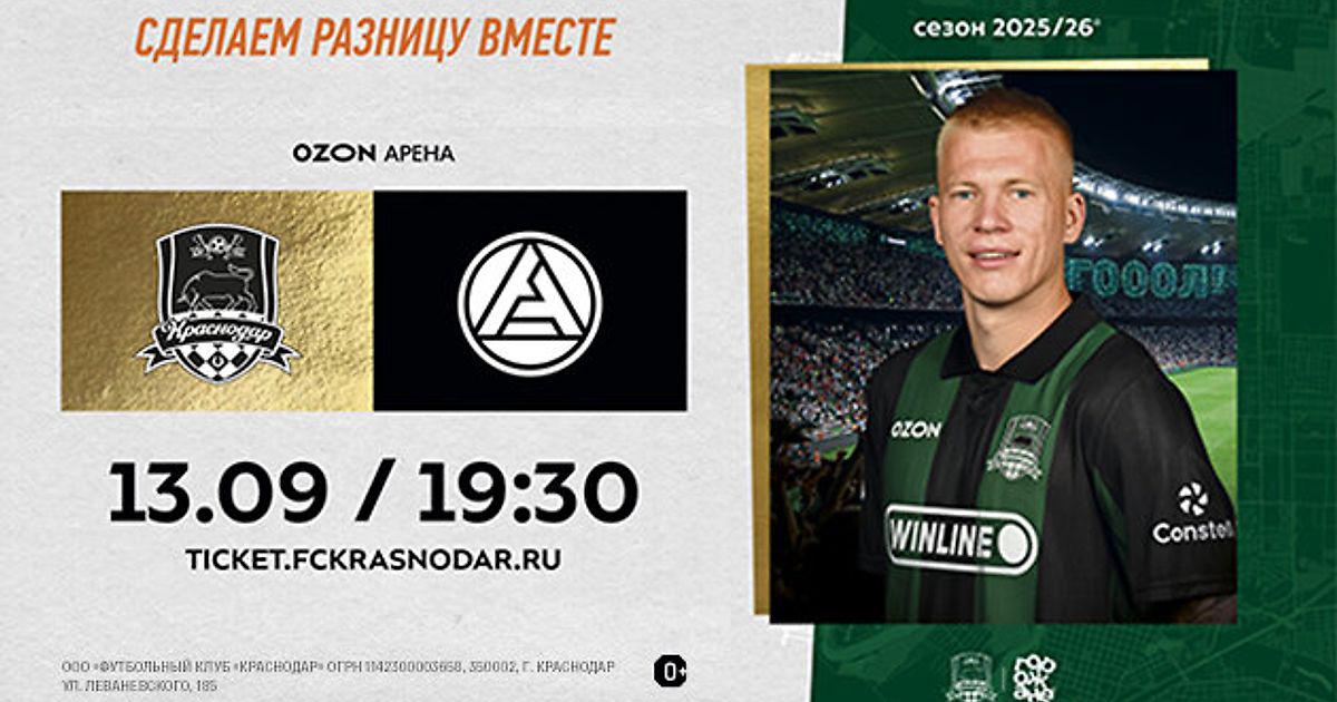 «Краснодар» сыграет с «Акроном». Краснодарцы, приходите поддержать быков на «Ozon Арене»!