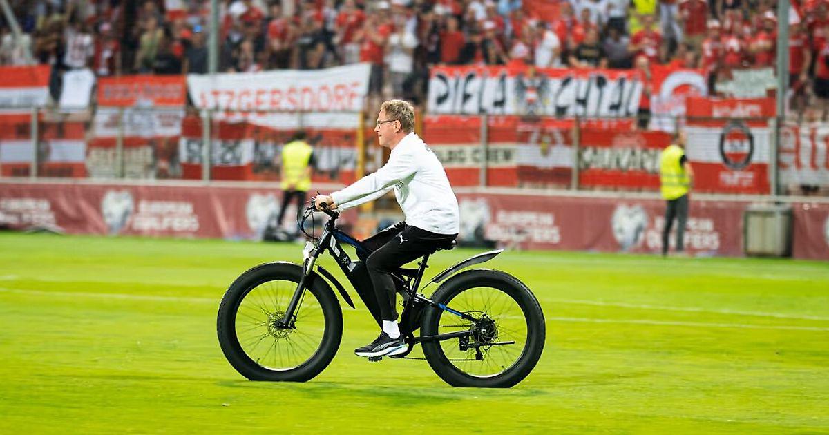 Ральф Рангник проехал на электровелосипеде по полю в матче квалификации ЧМ-2026.