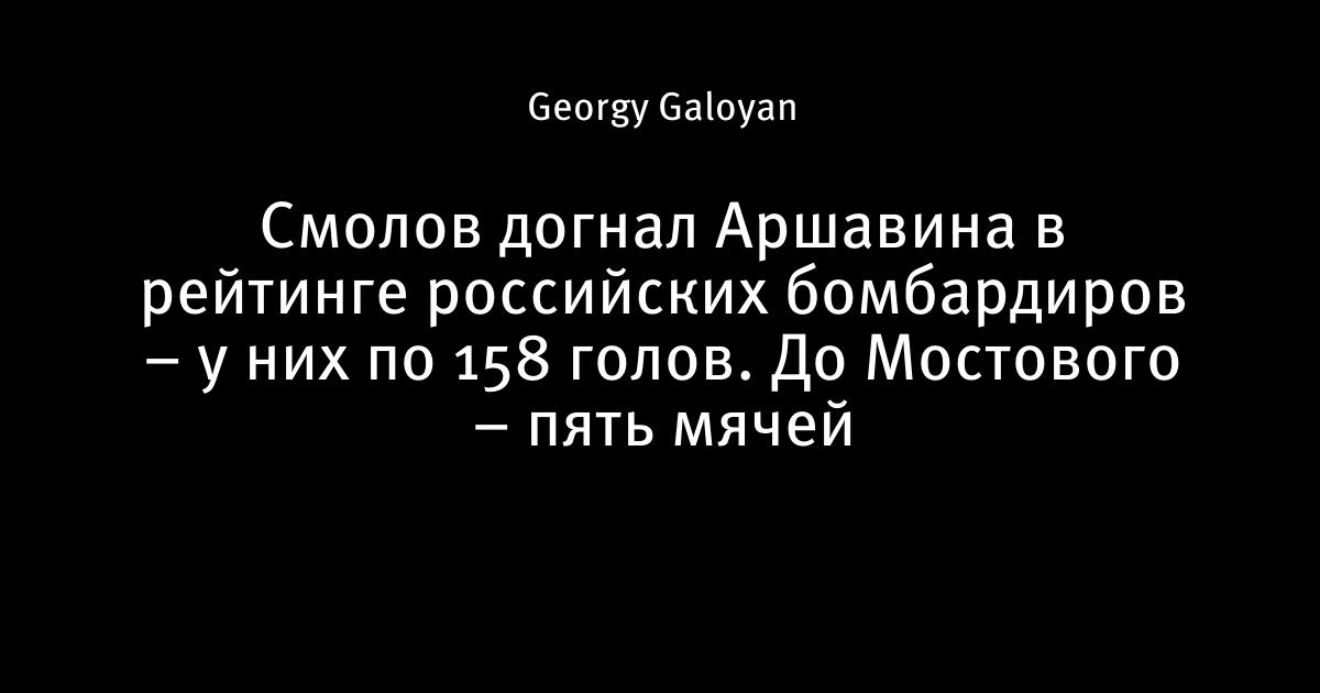 Смолов догнал Аршавина в рейтинге российских бомбардиров – у них по 158 голов. До Мостового – пять мячей