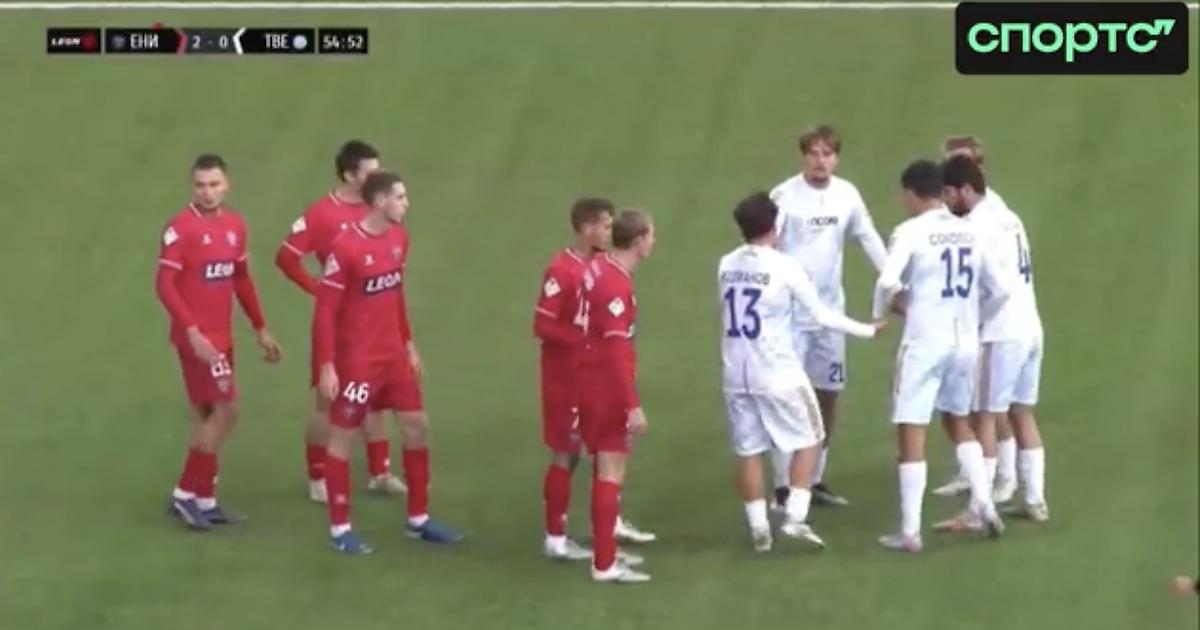 Игроки «Твери» устроили хоровод во время стандарта в матче против «Енисея-2». Эпизод не завершился голом