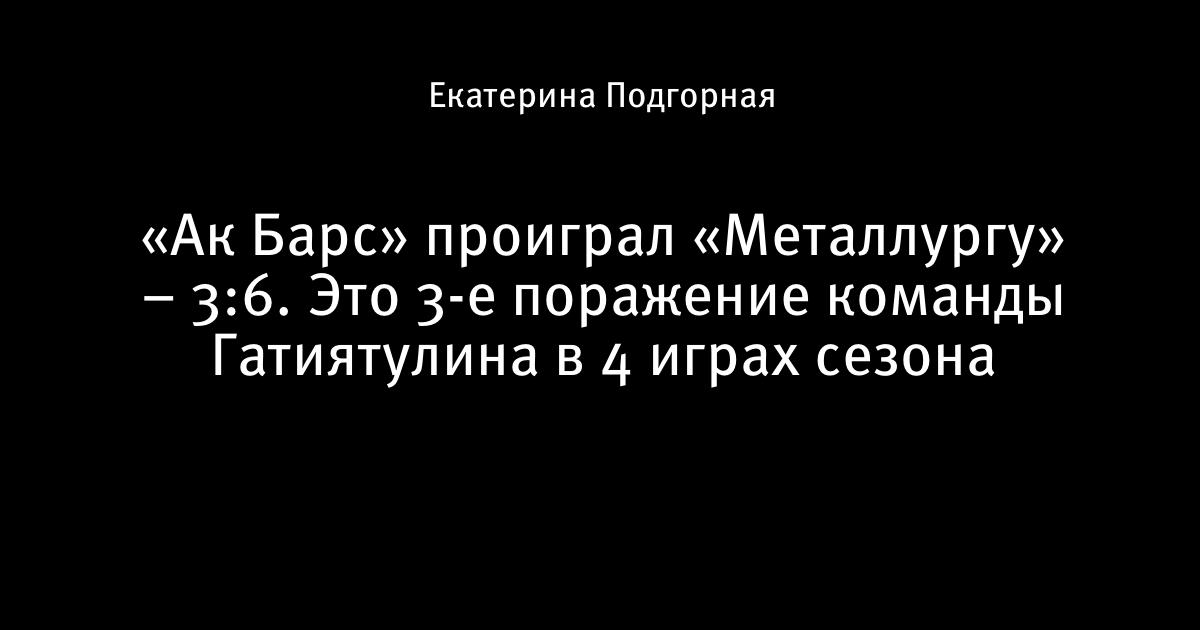 «Ак Барс» проиграл «Металлургу» – 3:6. Это 3-е поражение команды Гатиятулина в 4 играх сезона