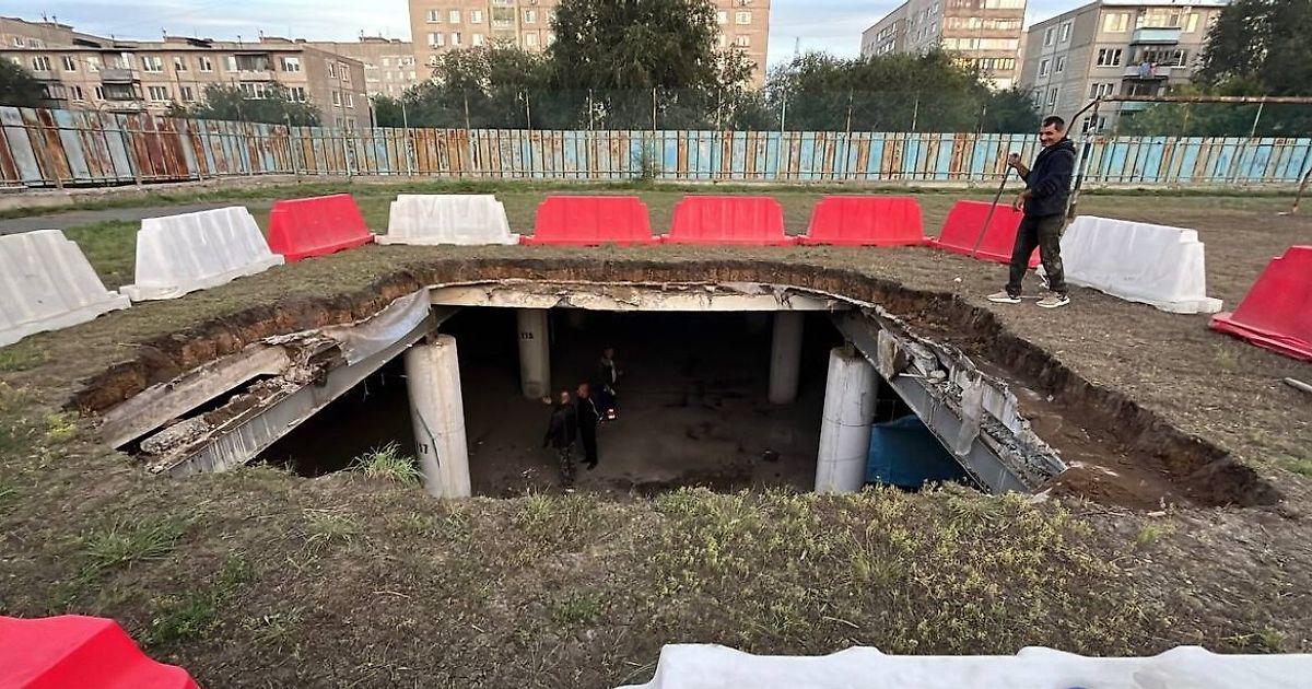 Под спортивной площадкой школы №38 находится подземная парковка. На паркинге обрушился потолок, а за ним и верхний грунт.
